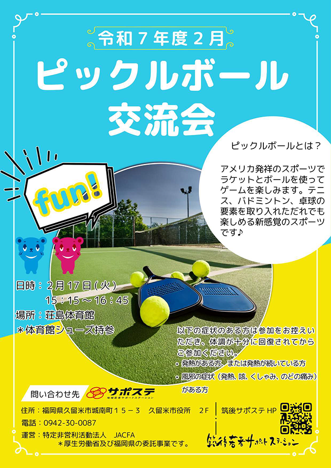 | 2025/3/15(土) | 筑後サポステ 家族セミナー |