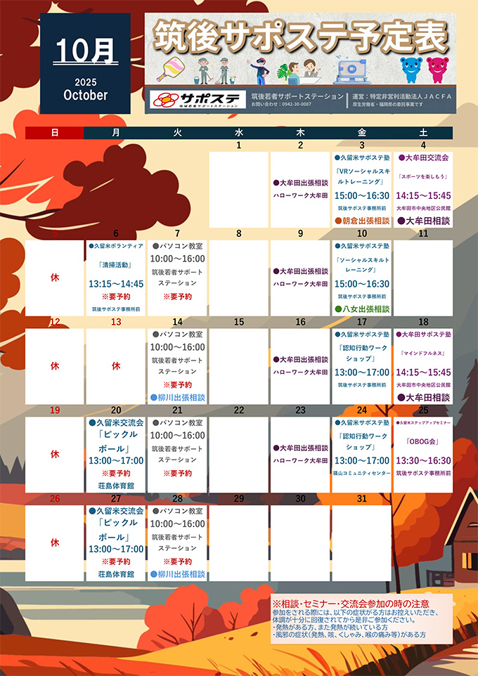 - 10月行事カレンダーのご案内