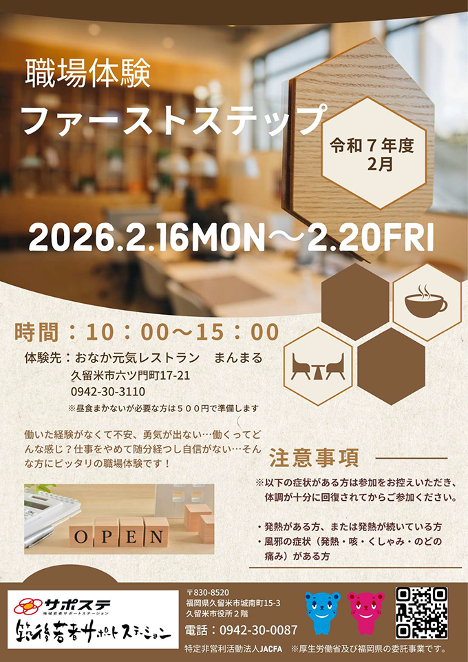 等々お悩みの皆様へ、筑後若者サポートステーションでは地元の様々な企業・団体の皆様のご協力により、就労体験プログラム(JOBトレ!!)を実施しています。
